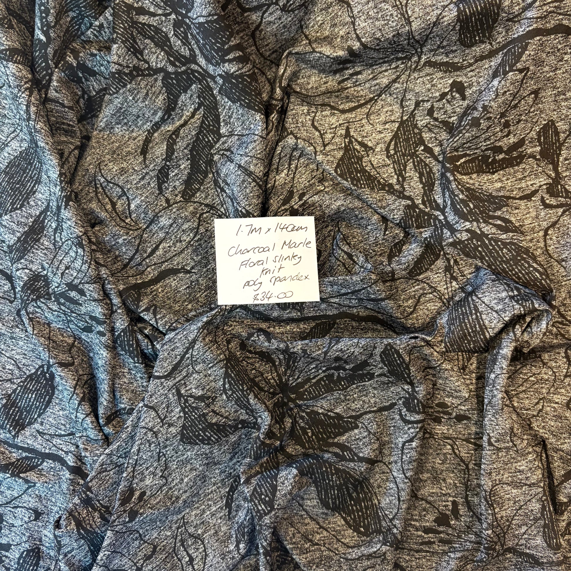 1.7m Charcoal Marle Floral Slinky Knit
