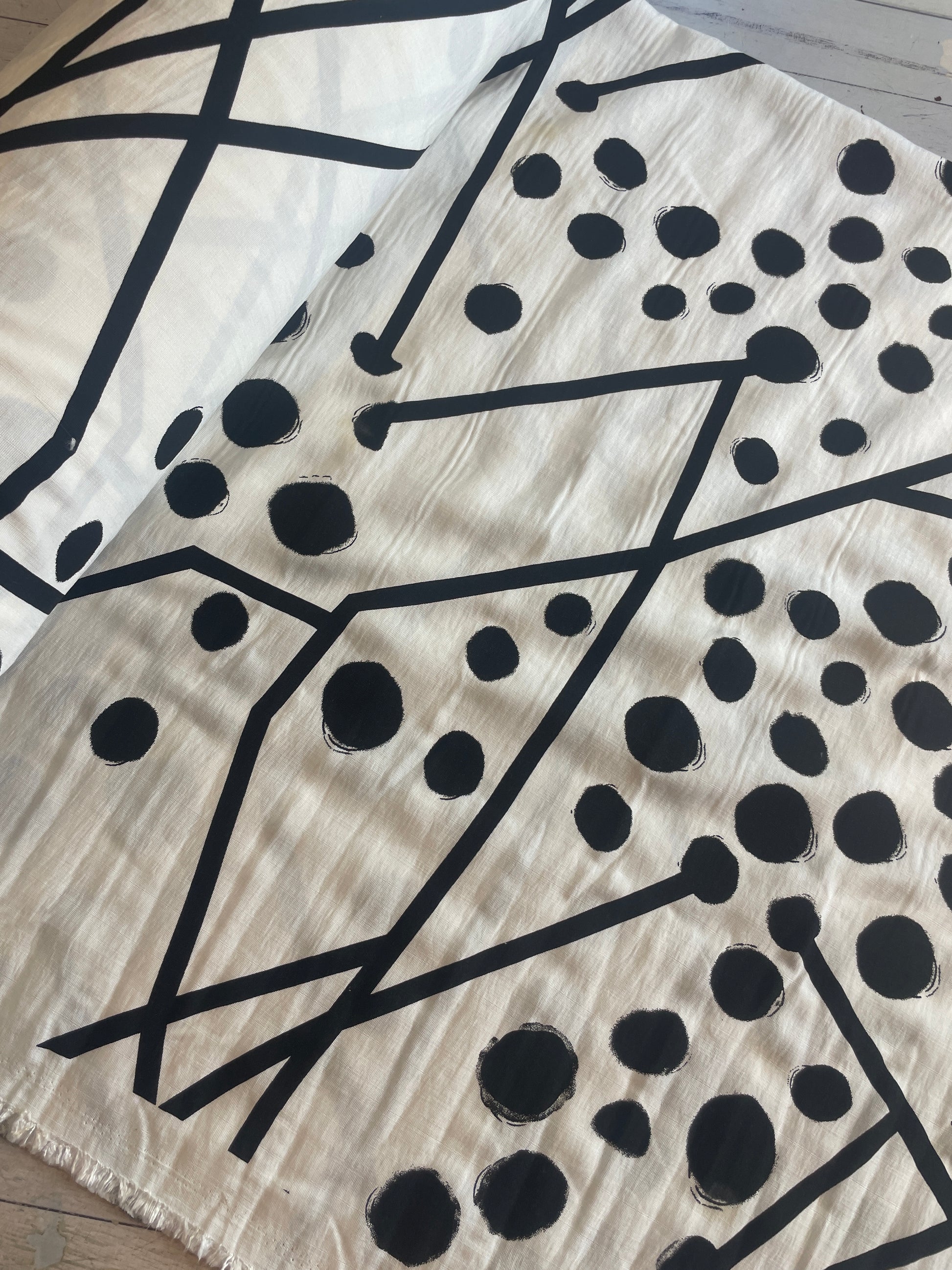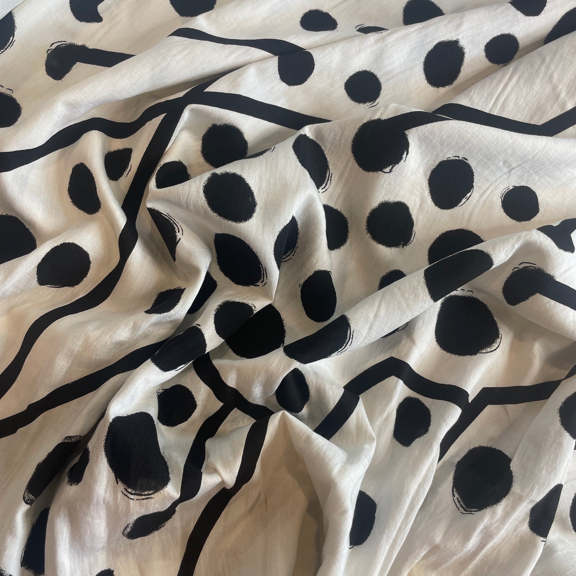 Designer dead stock come to us without fibre content and weight information. We give our best educated guess on both.