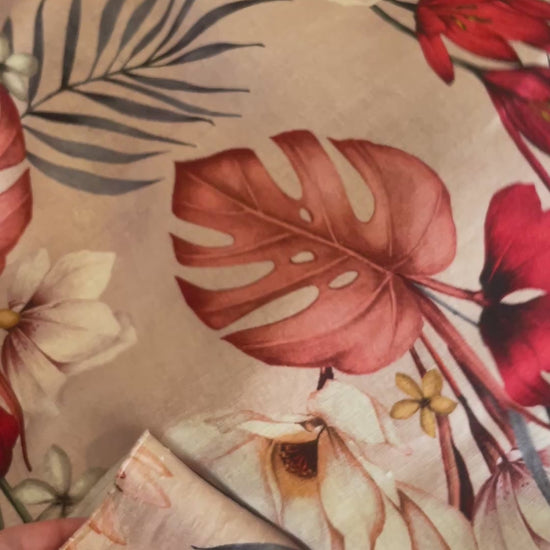 Designer dead stock come to us without fibre content and weight information. We give our best educated guess on both.