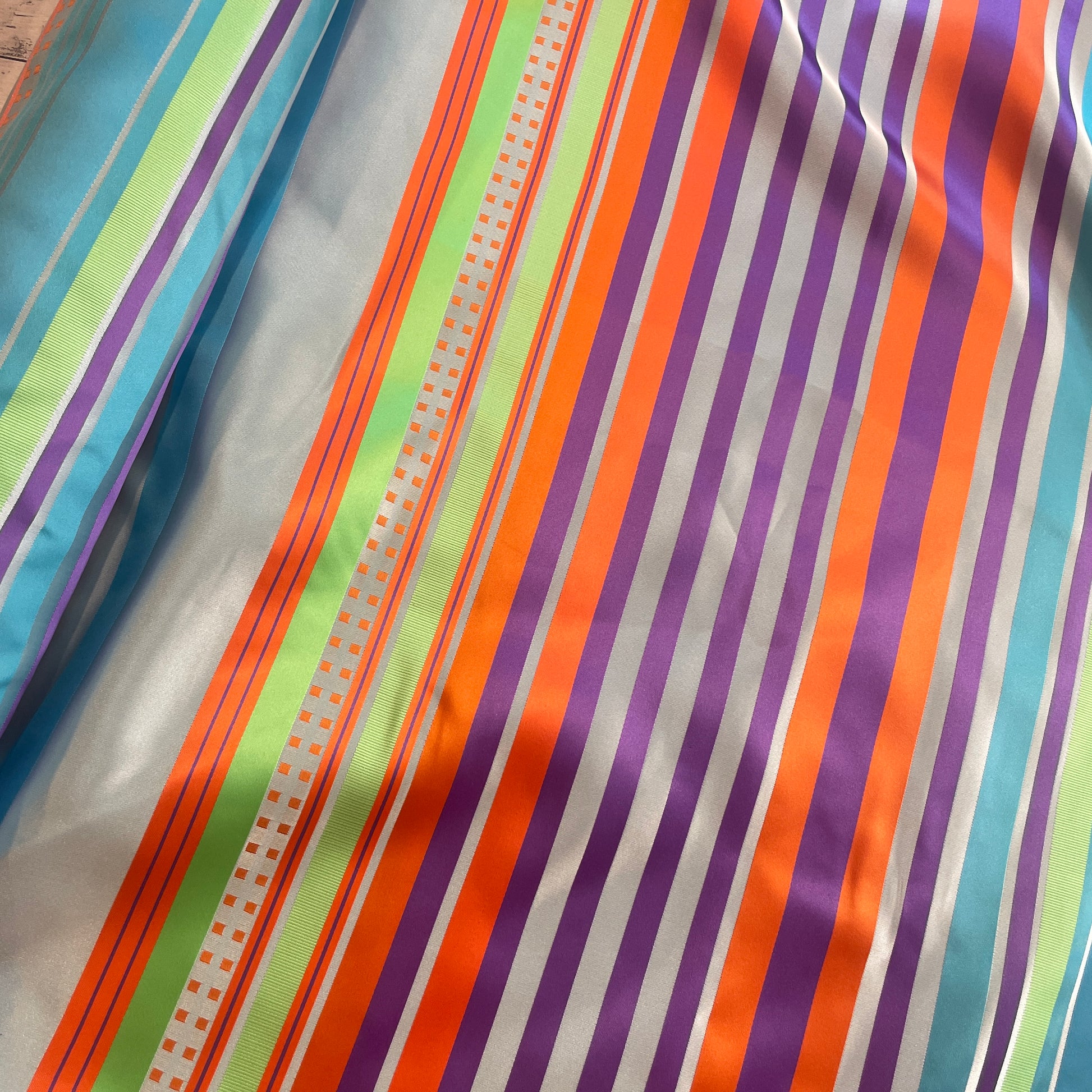 Weight: midweight with a satin finish and subtle jacquard finish to the stripes