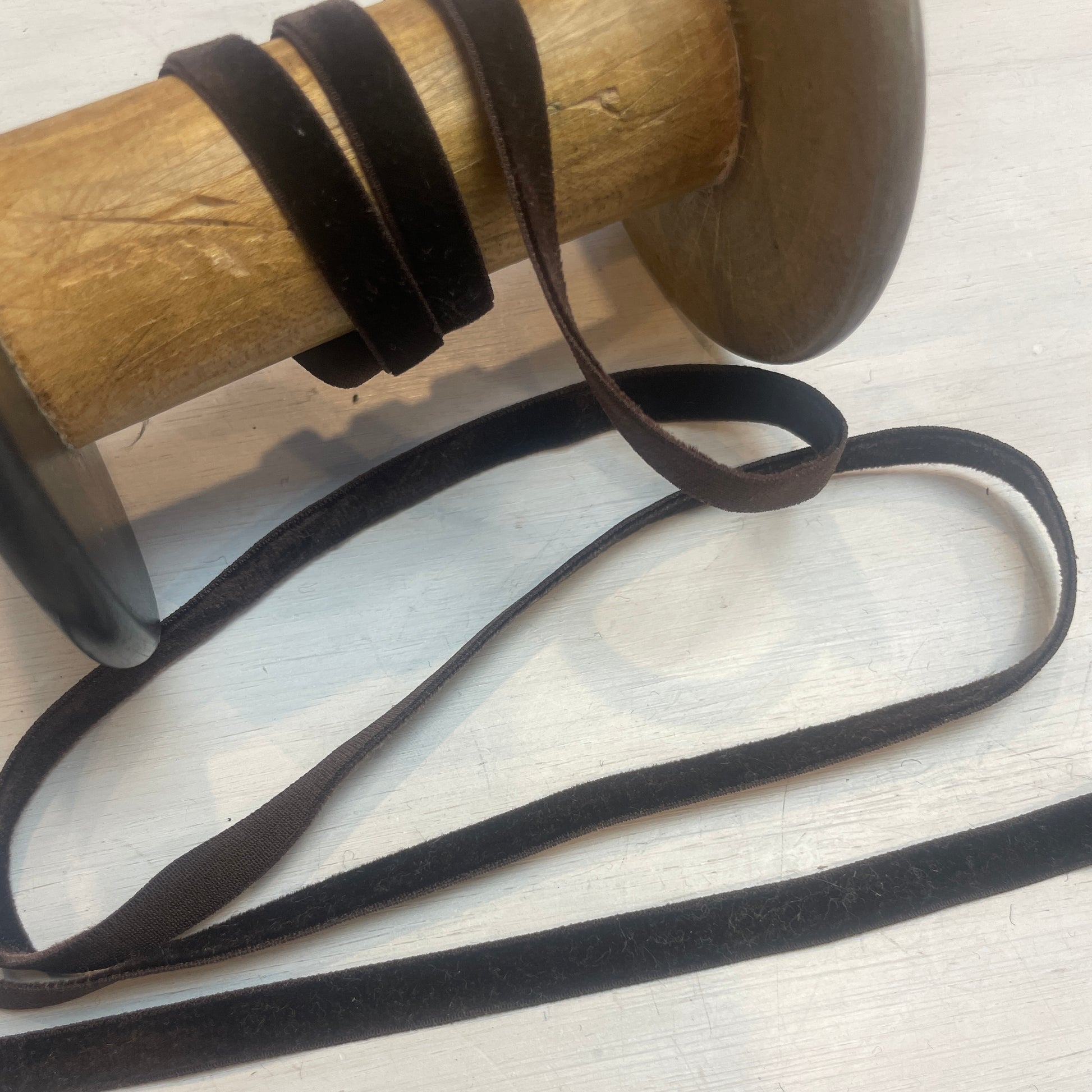 Dark chocolate 8mm stretch velvet ribbon