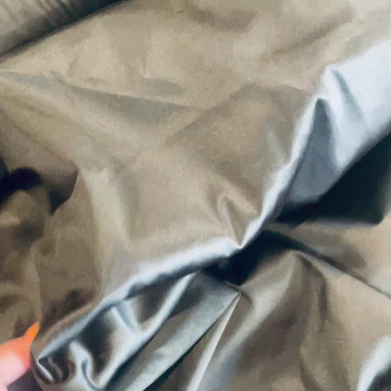 Weight: mid weight with a slightly crisp handle and satin smooth finish, one way stretch