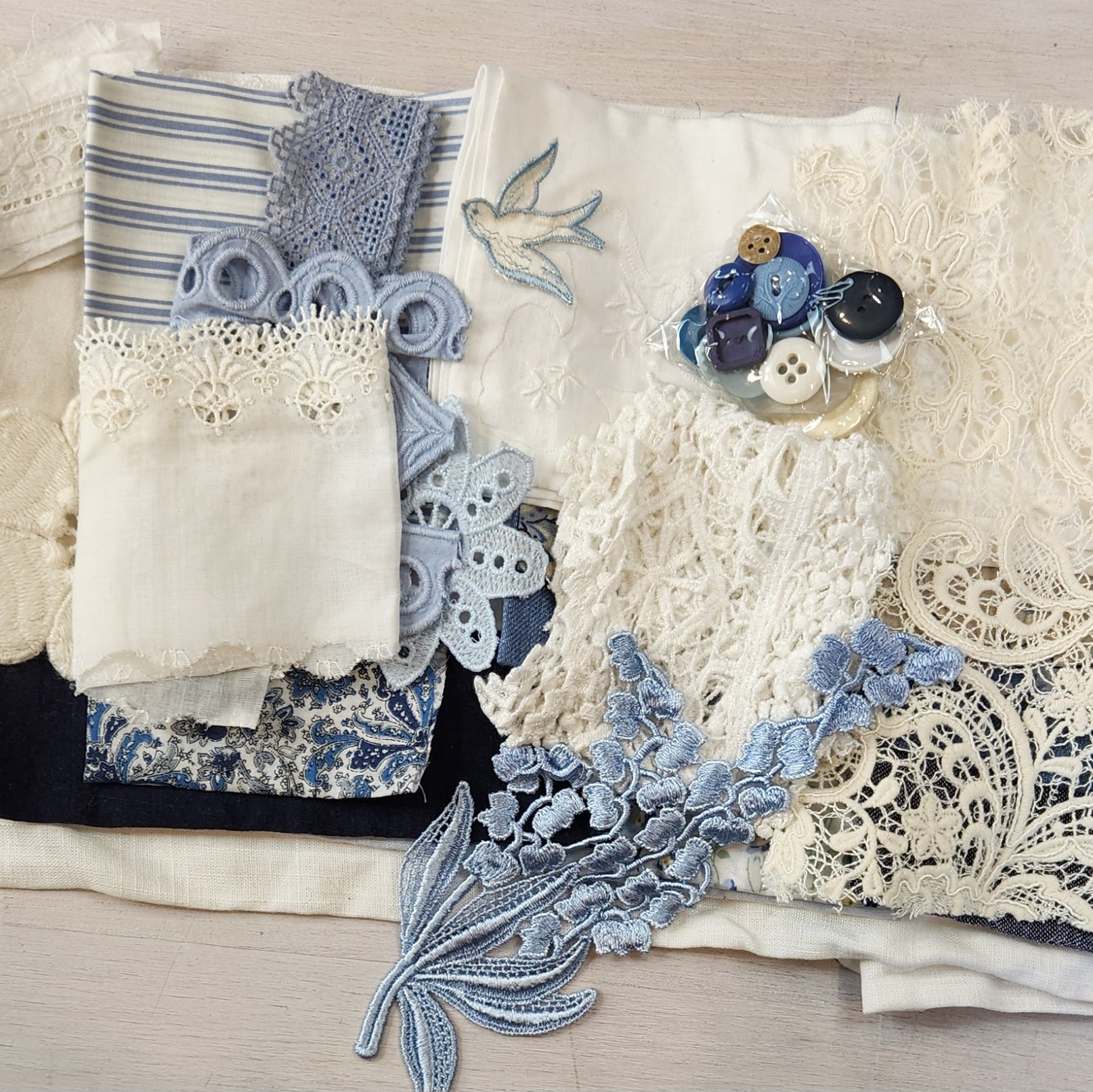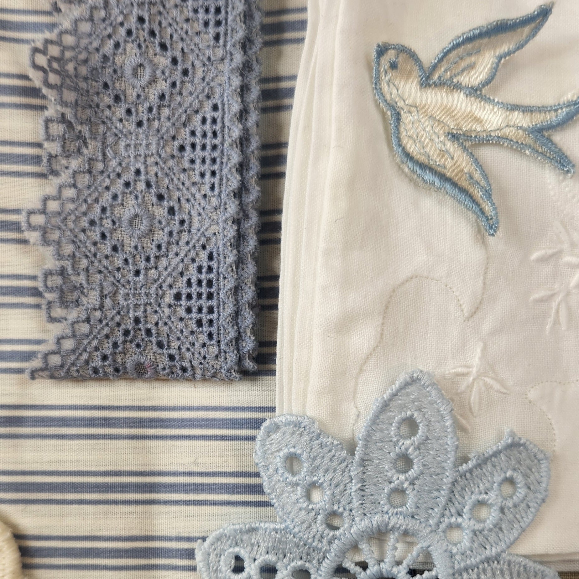 A carefully curated selection of lovely textiles and vintage pieces such as teatowels, napkins or table cloths. Also includes vintage motiffs, lace, trims and buttons.