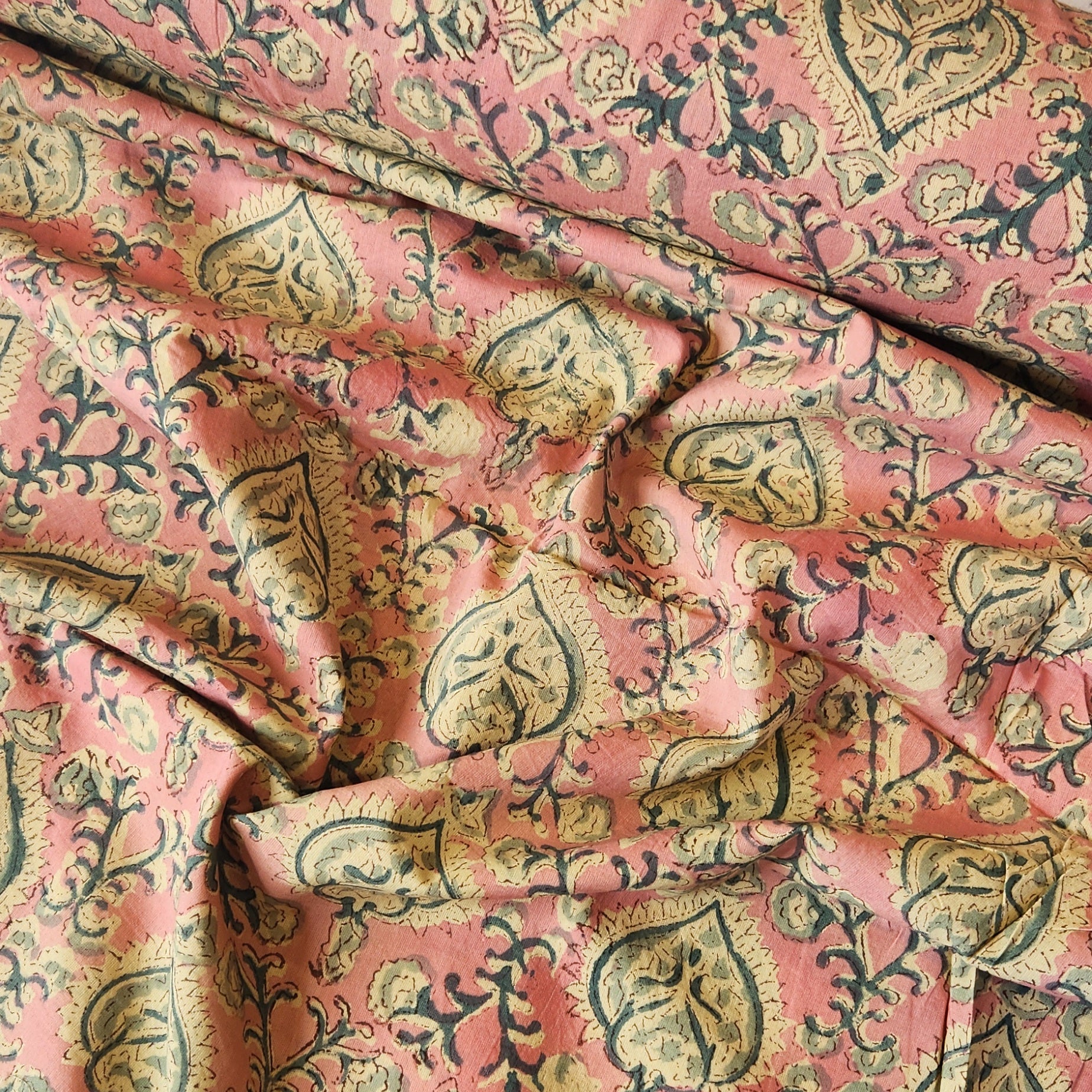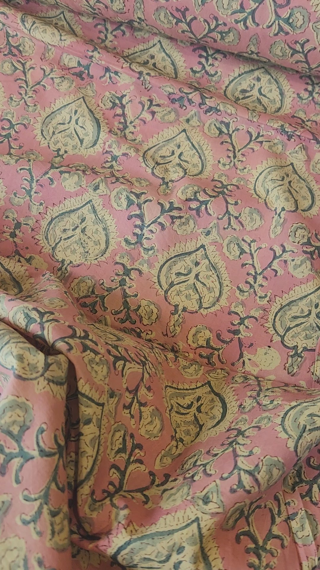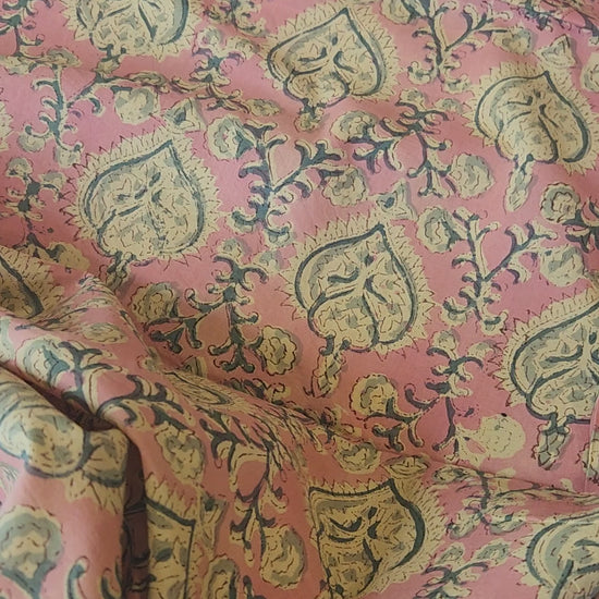 Block print cotton fabric is created using a technique where designs are carved into wooden blocks, which are then used to stamp patterns onto cotton fabric. This traditional method, often done by hand, results in unique, handcrafted textiles with slight variations in each piece. The process involves preparing the fabric, carving the blocks, mixing dyes, and carefully applying the blocks to the fabric, often multiple times for different colours. Variations in print are to be expected in this kind of hand created design