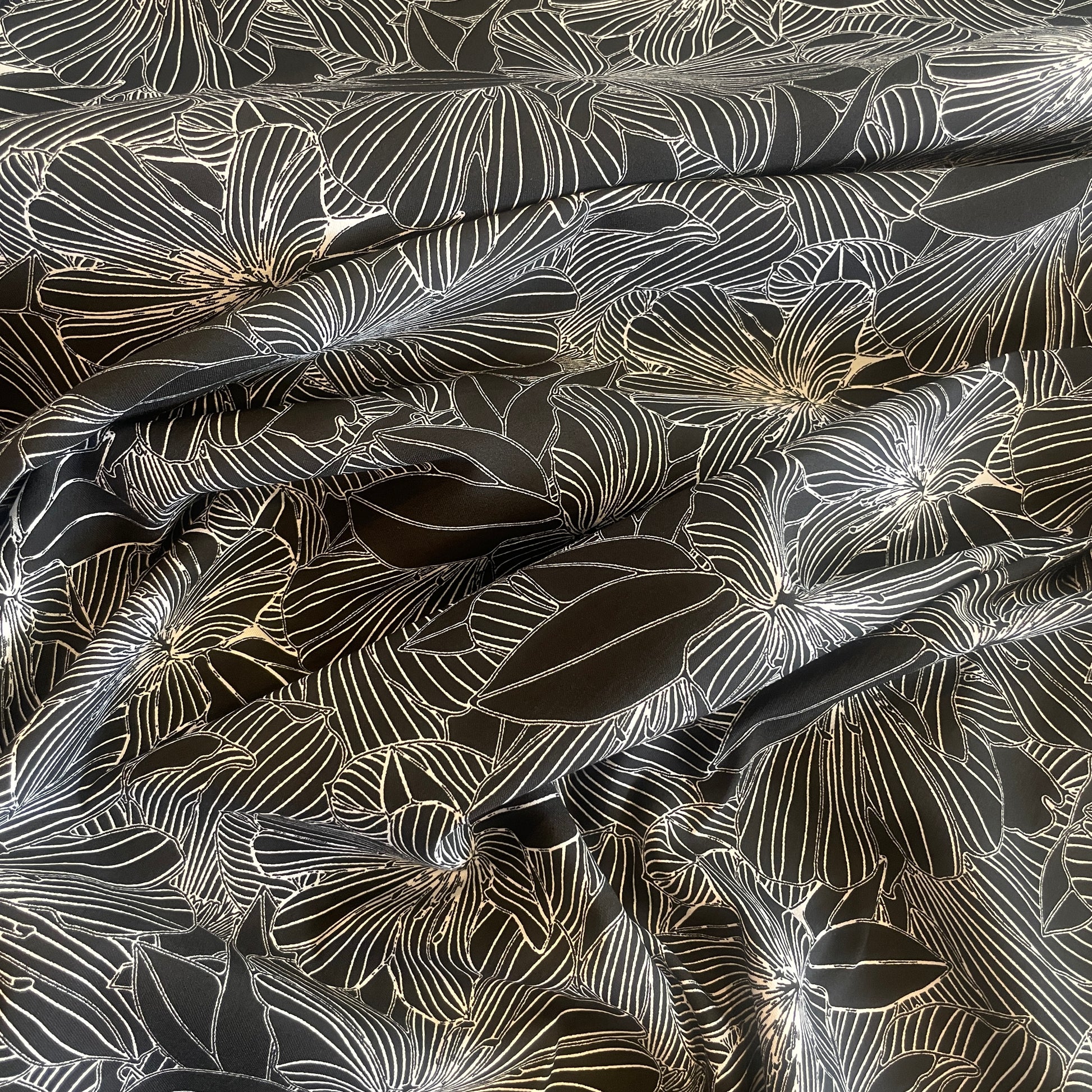 Designer dead stock come to us without fibre content and weight information. We give our best educated guess on both.