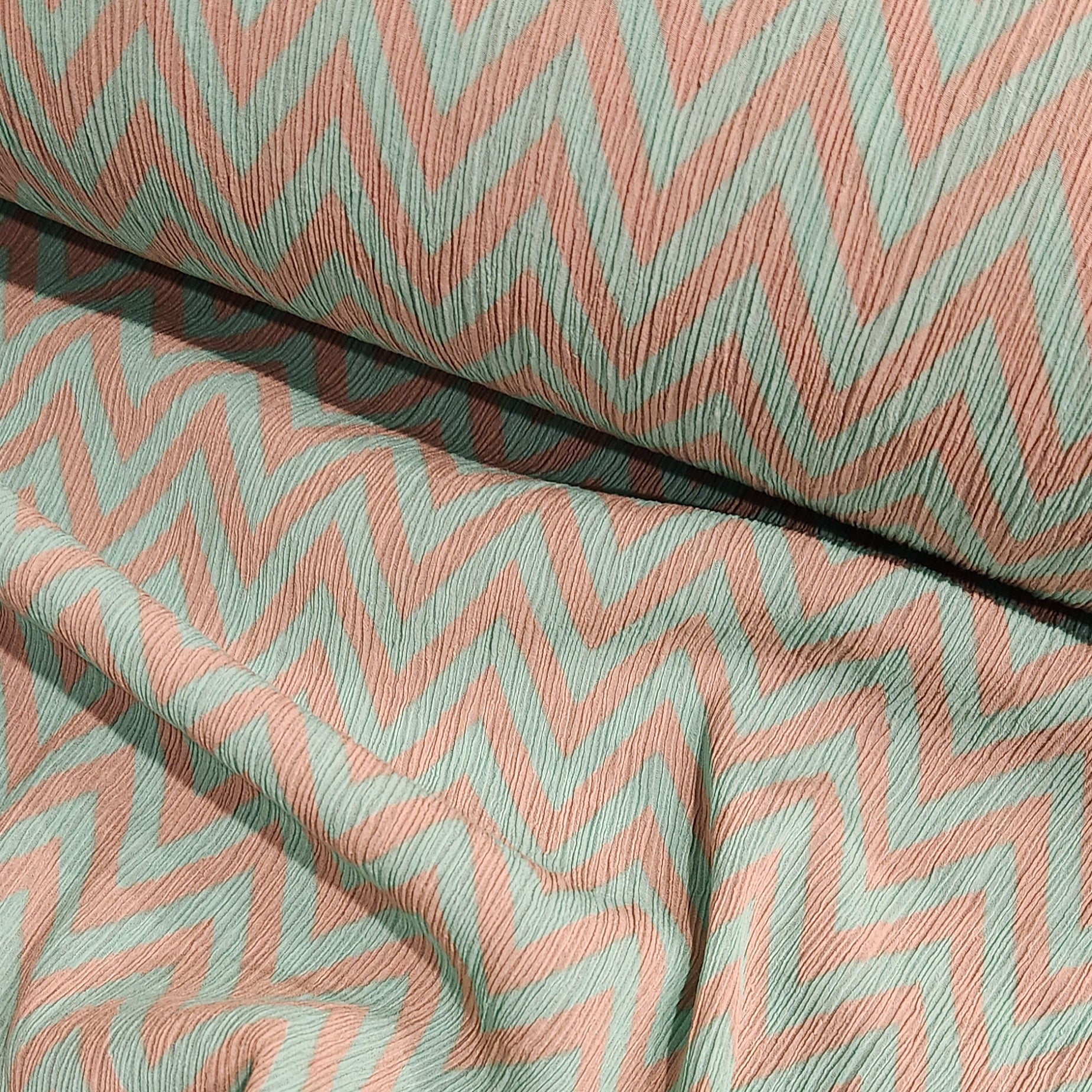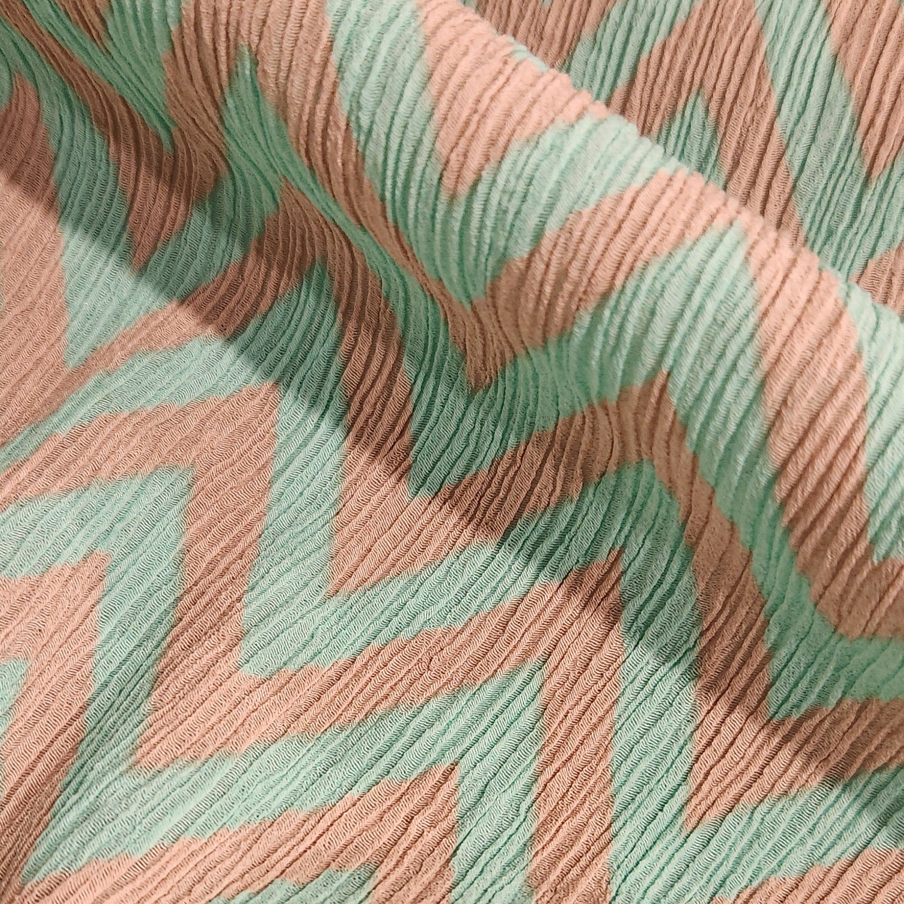 Crinkly textured finish which allows for the fabric to stretch against the grain