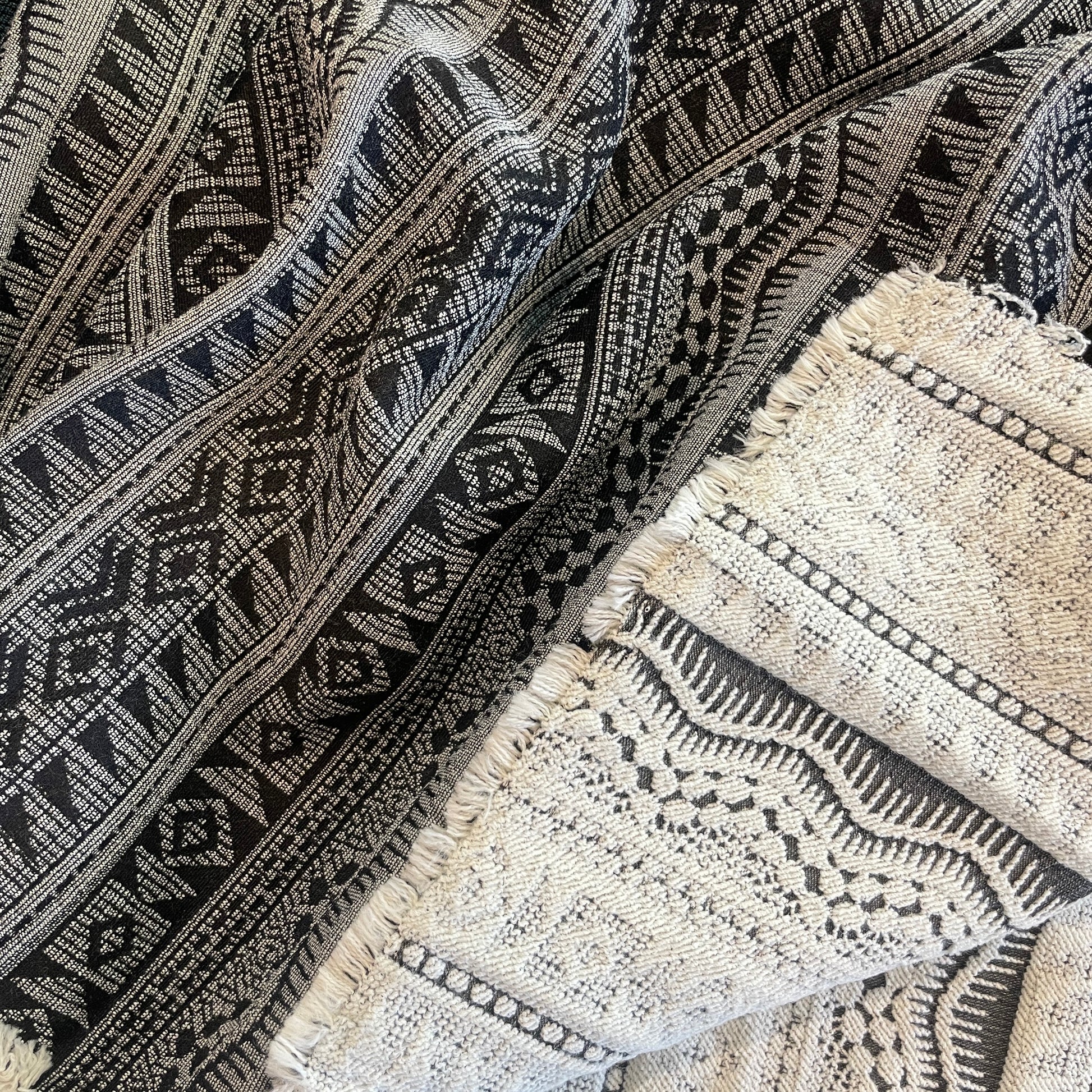 Designer dead stock come to us without fibre content and weight information. We give our best educated guess on both.