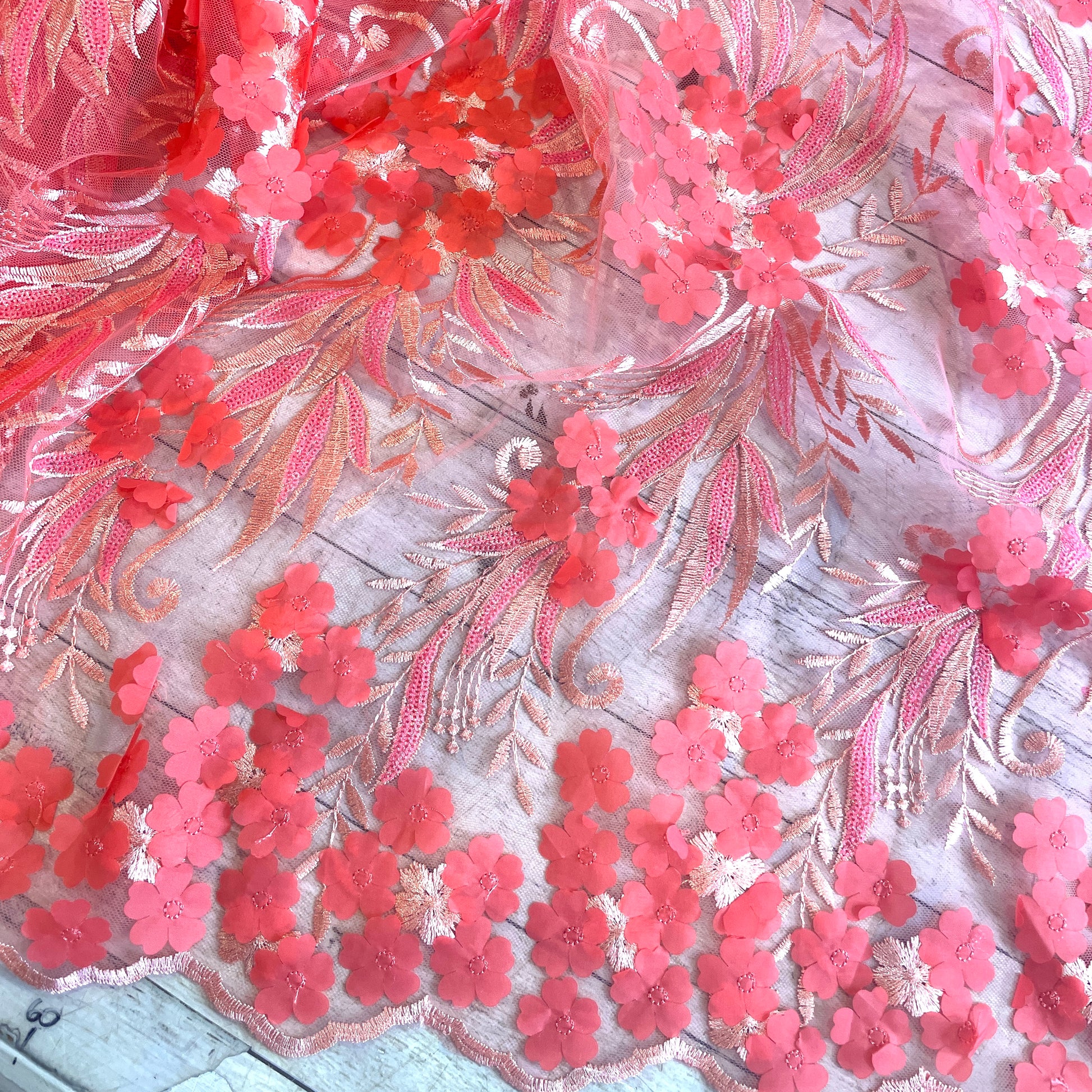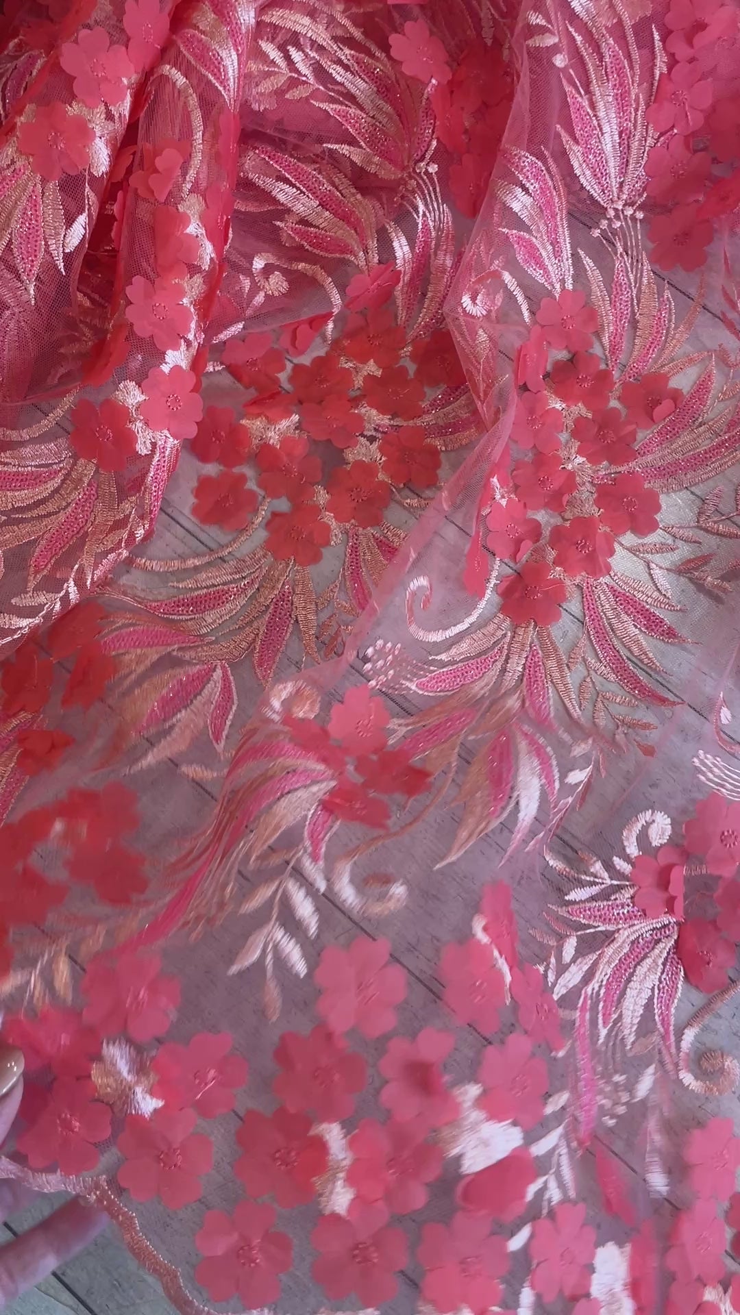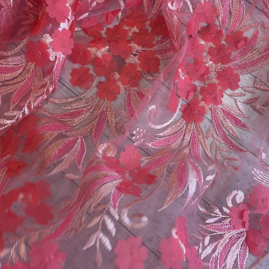 Soft tulle base with light 3D flowers, with delicate sequins threaded throuhout