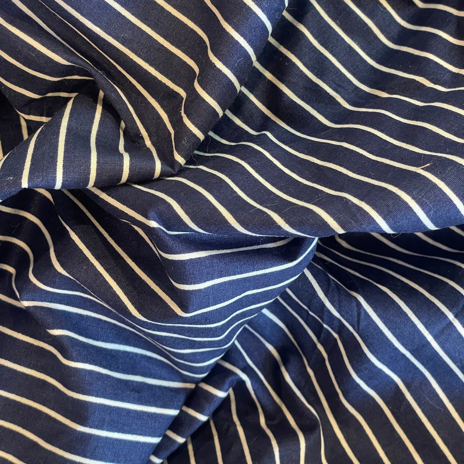 Nautical navy stripe stretch Cotton Shirting