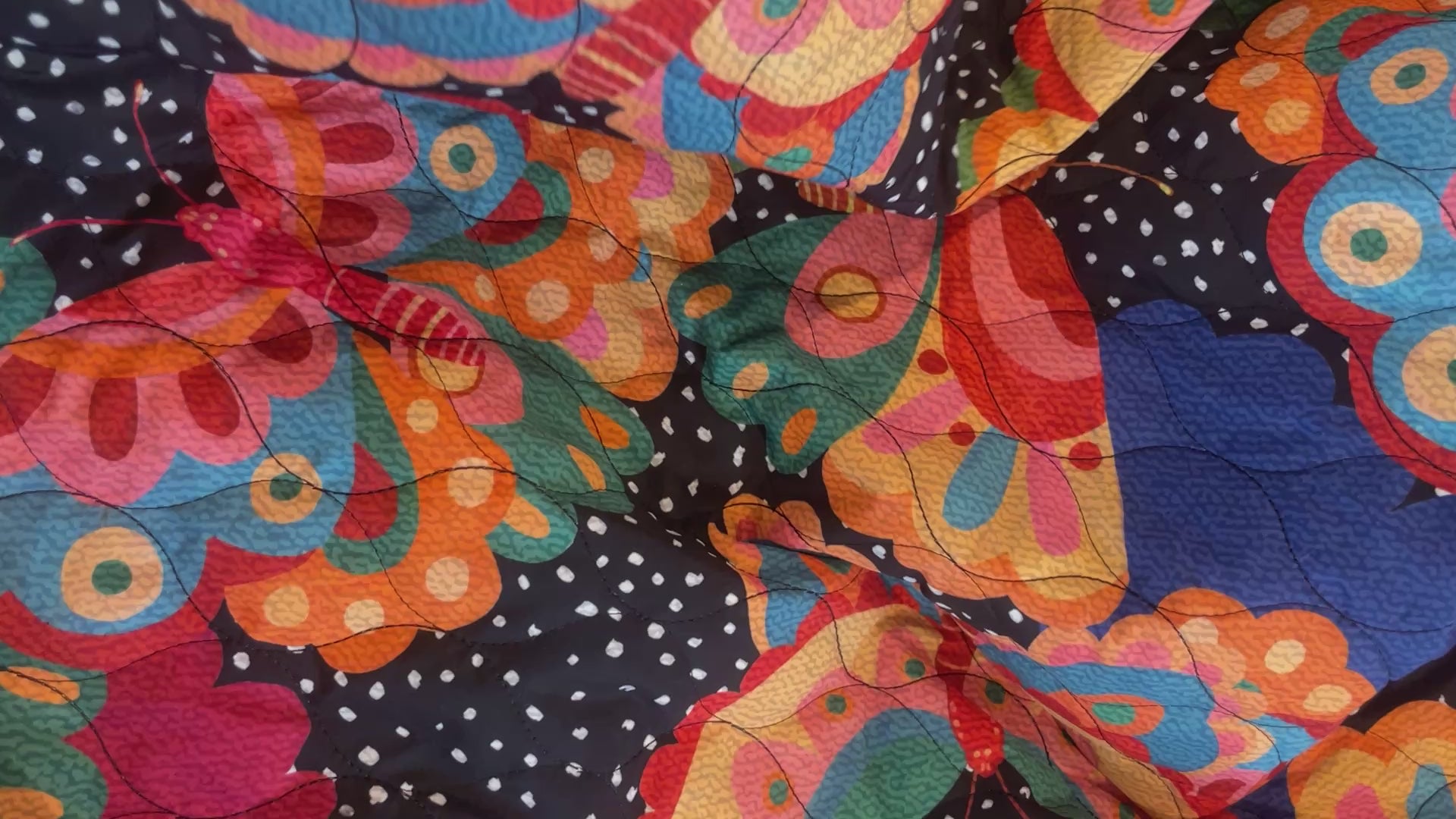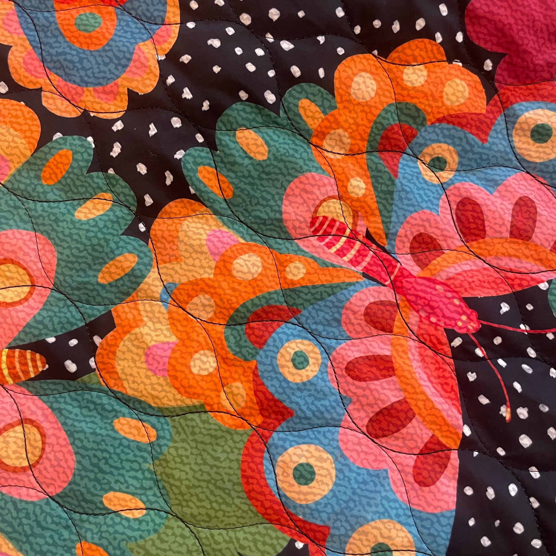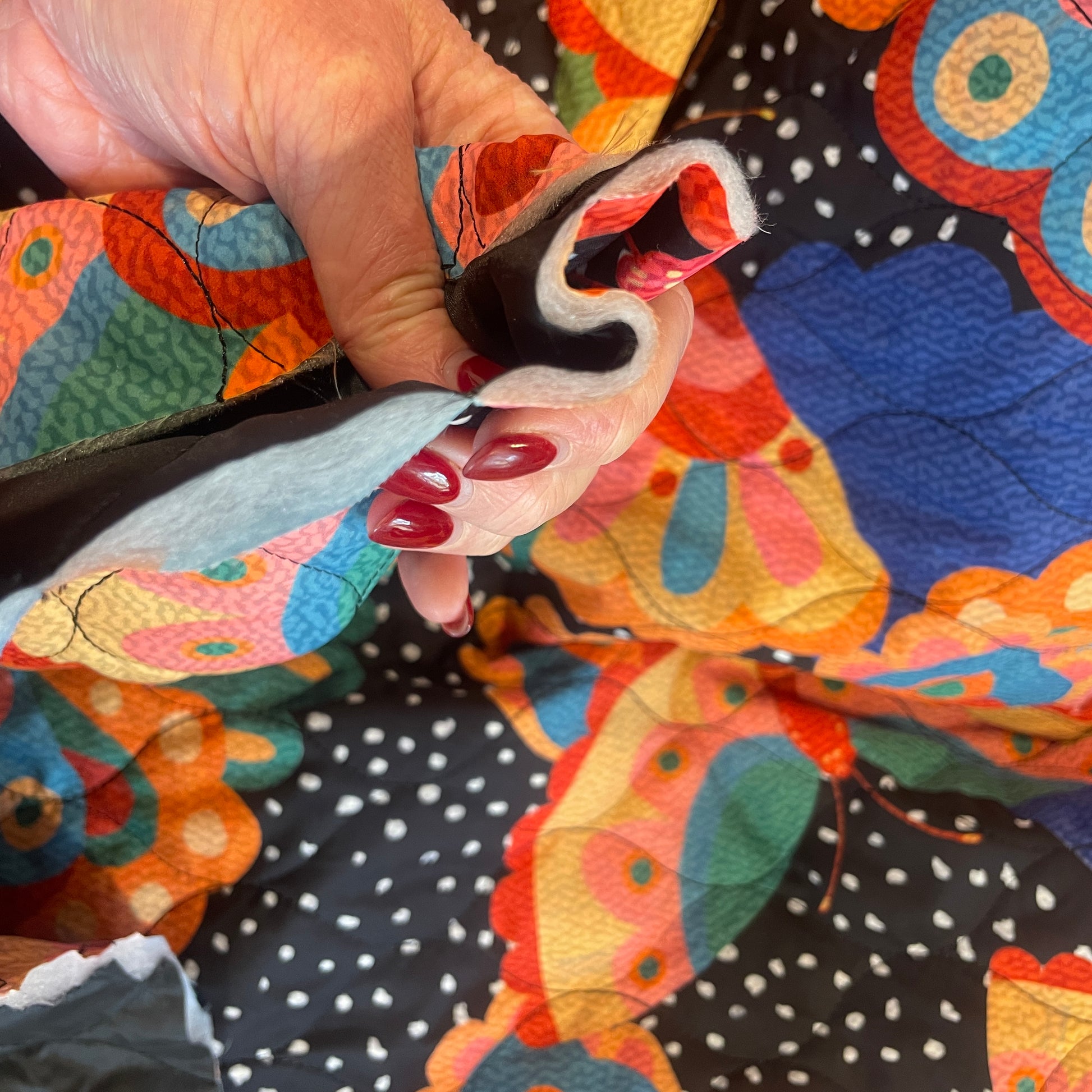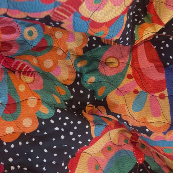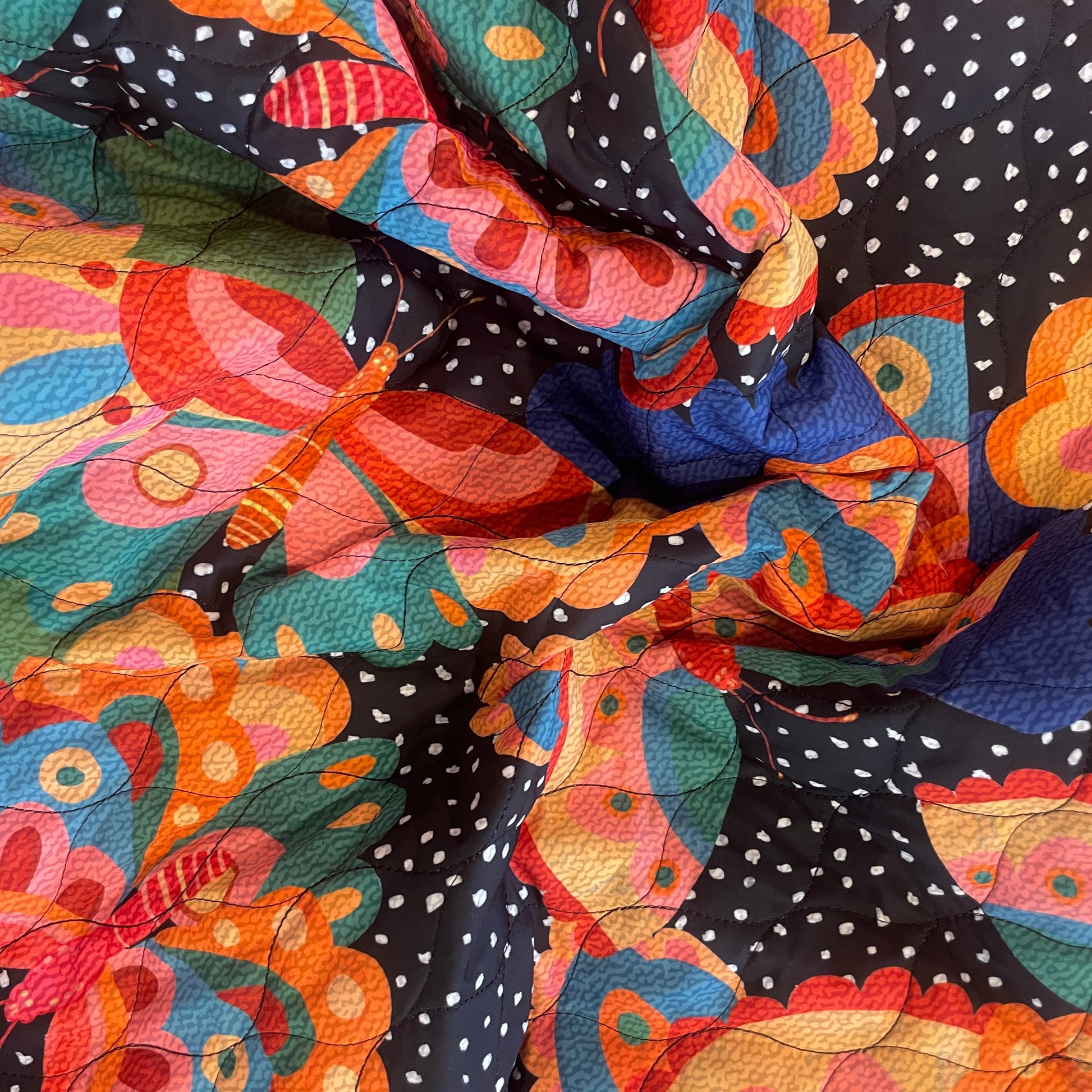 Printed onto the most wonderful water resistant quilted reversible puffer dressmaking fabric.