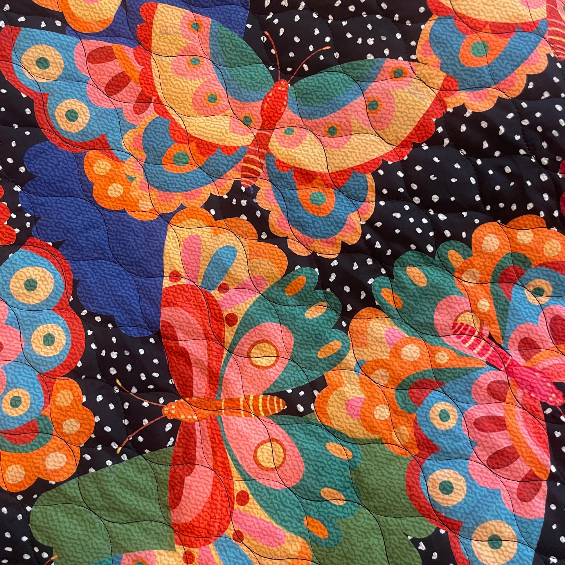 Bright butterflies flutter across a fabulous polka dot backdrop in this Fabric Godmother exclusive print