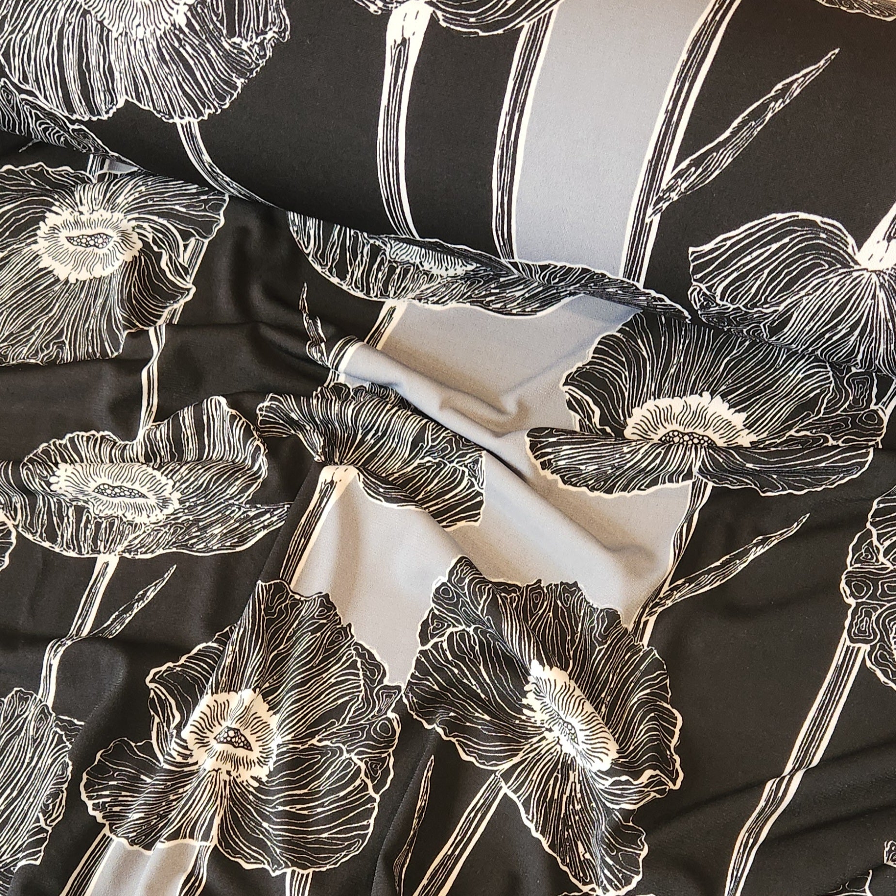 Designer dead stock come to us without fibre content and weight information. We give our best educated guess on both.