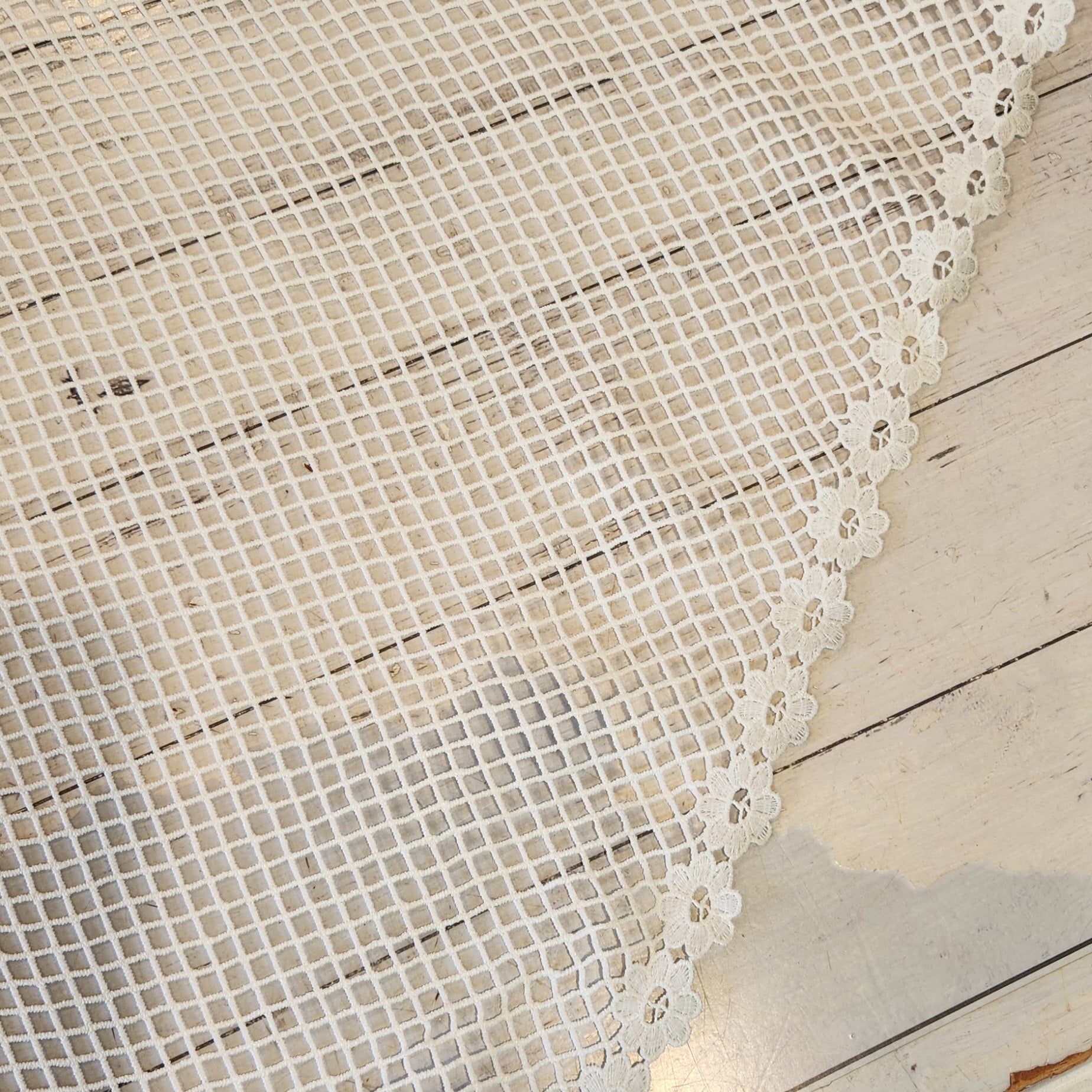 Lace border edges on both selvedges with a flower motiff broken by lattice sections