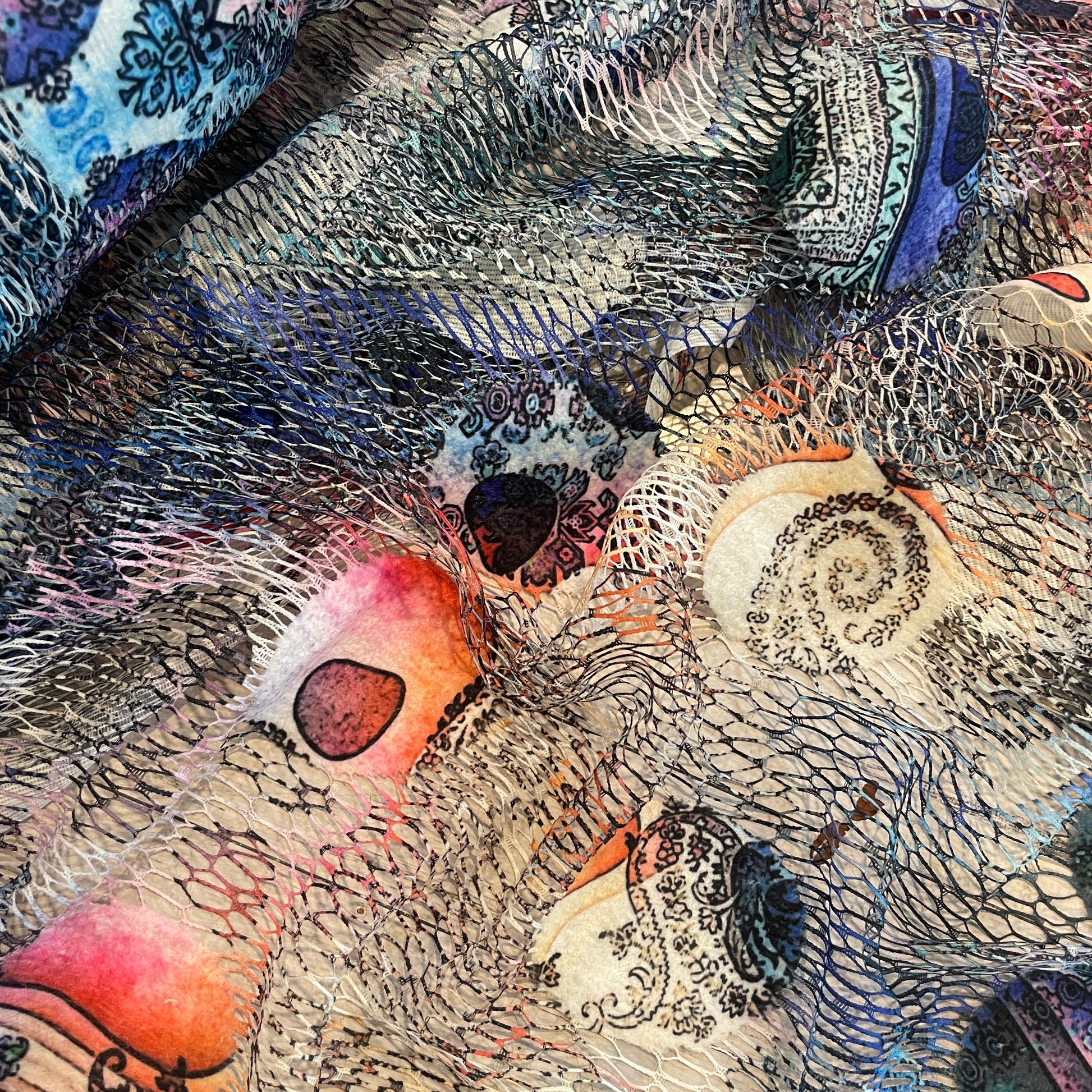 Designer dead stock come to us without fibre content and weight information. We give our best educated guess on both.