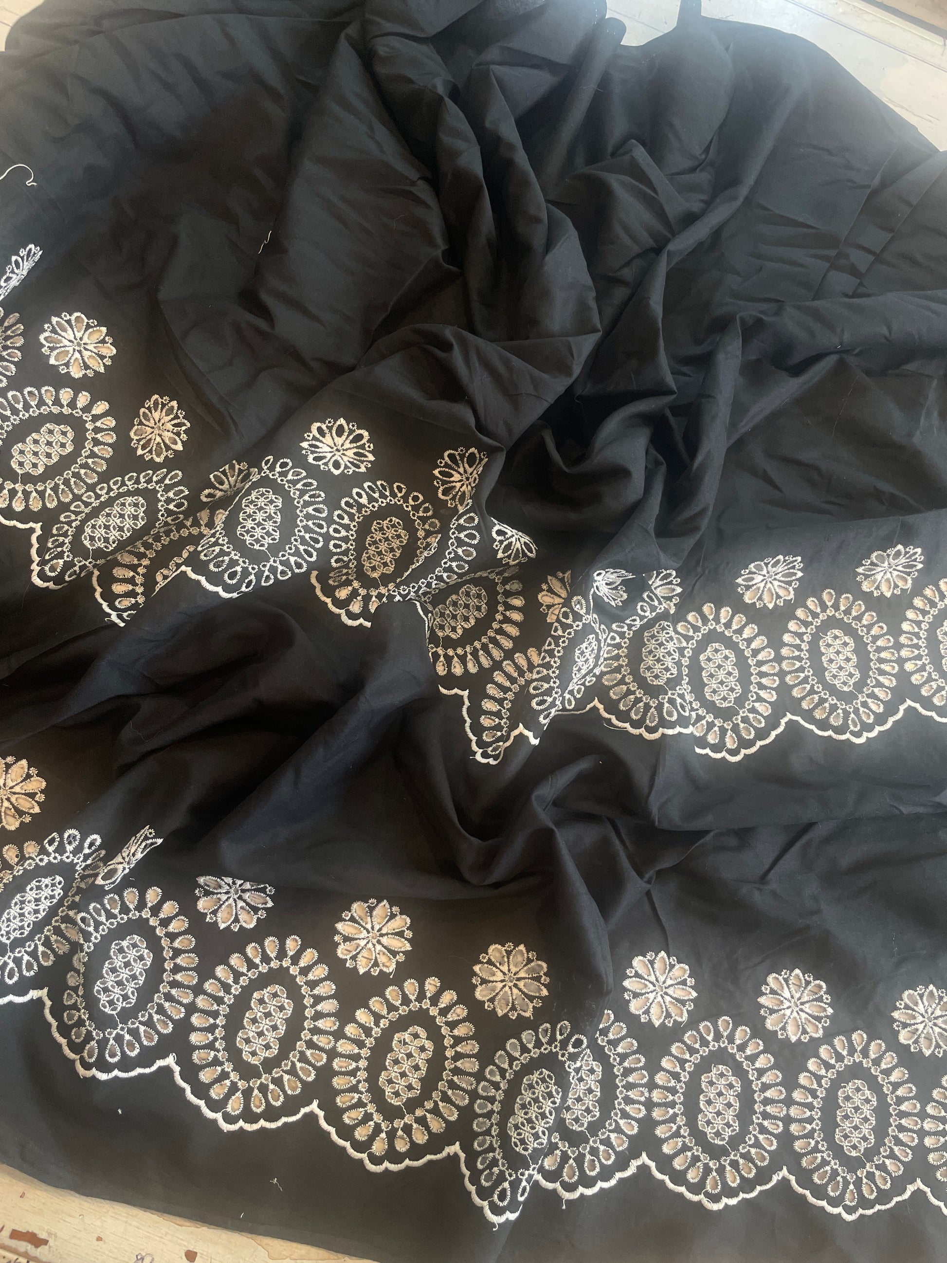 weight: lightweight has two rows of embroidery running parallel with the selvedge creating a wide border effect