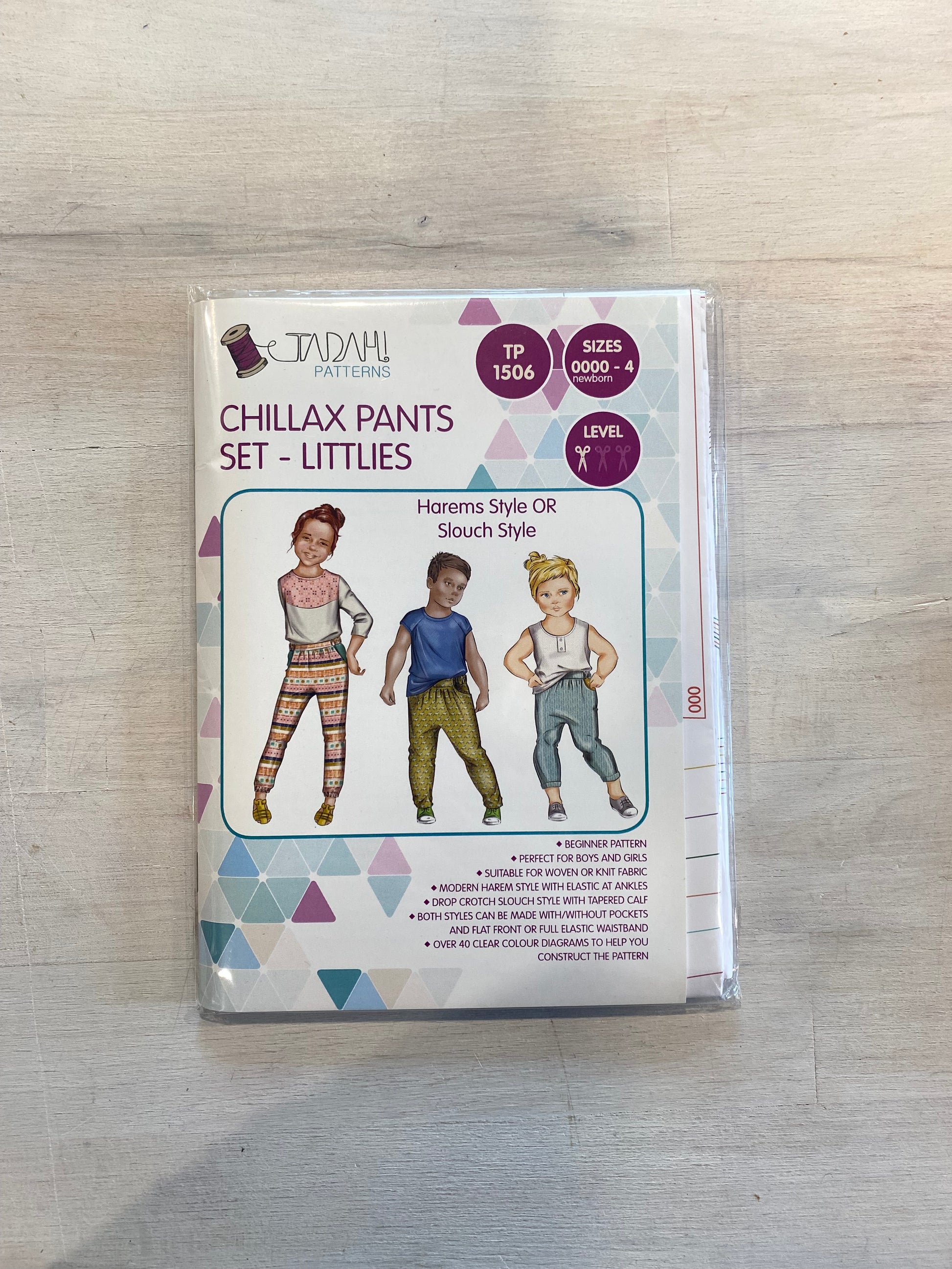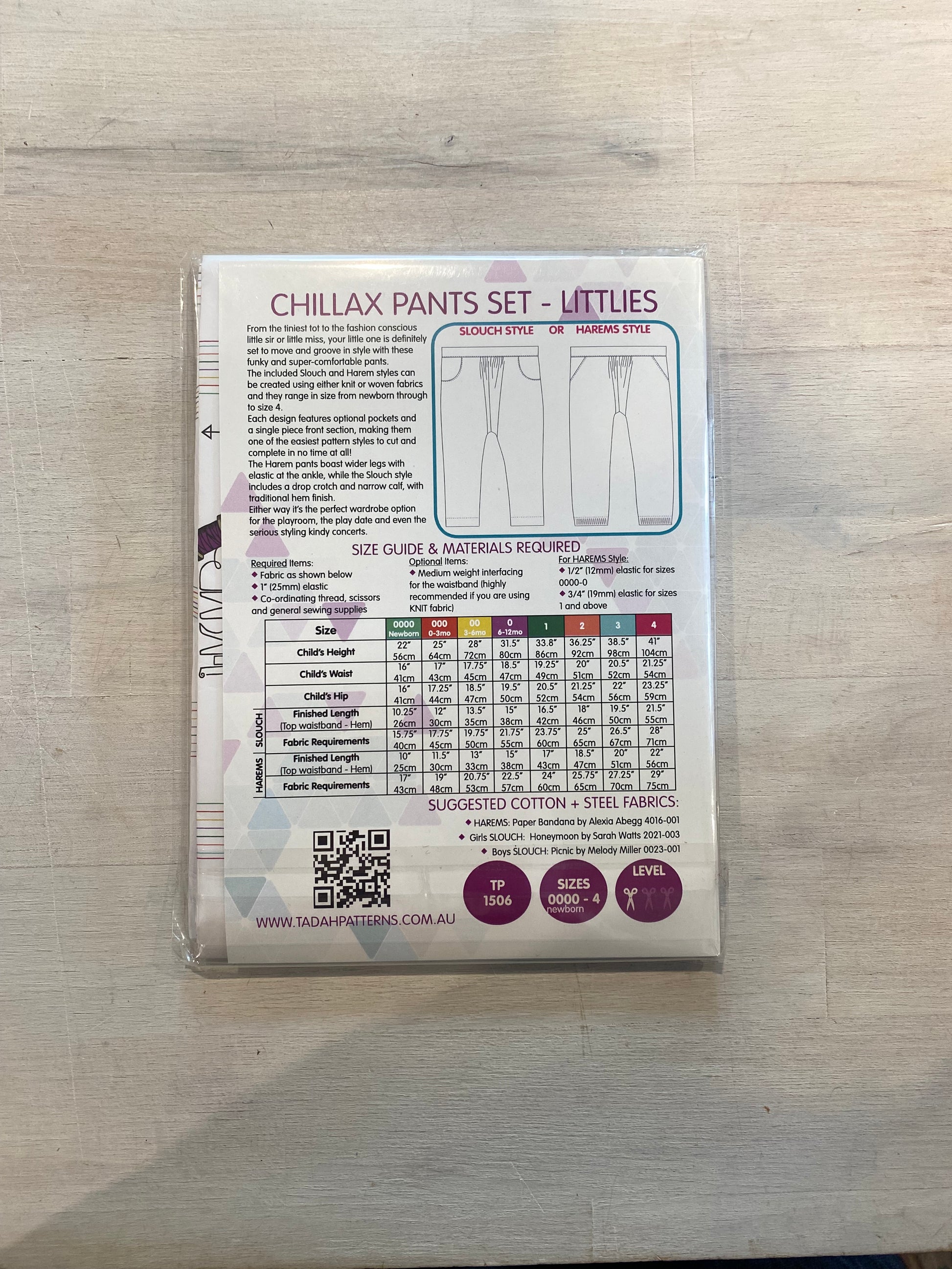 Both the Slouch and Harem styles can be created using either knit or woven fabrics and they range in size from newborn through to size 4.