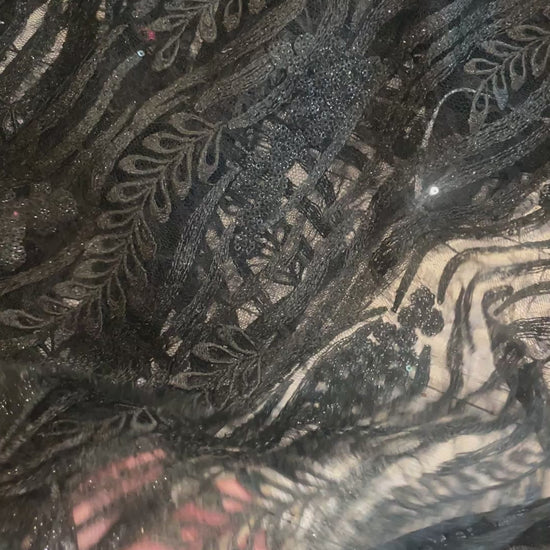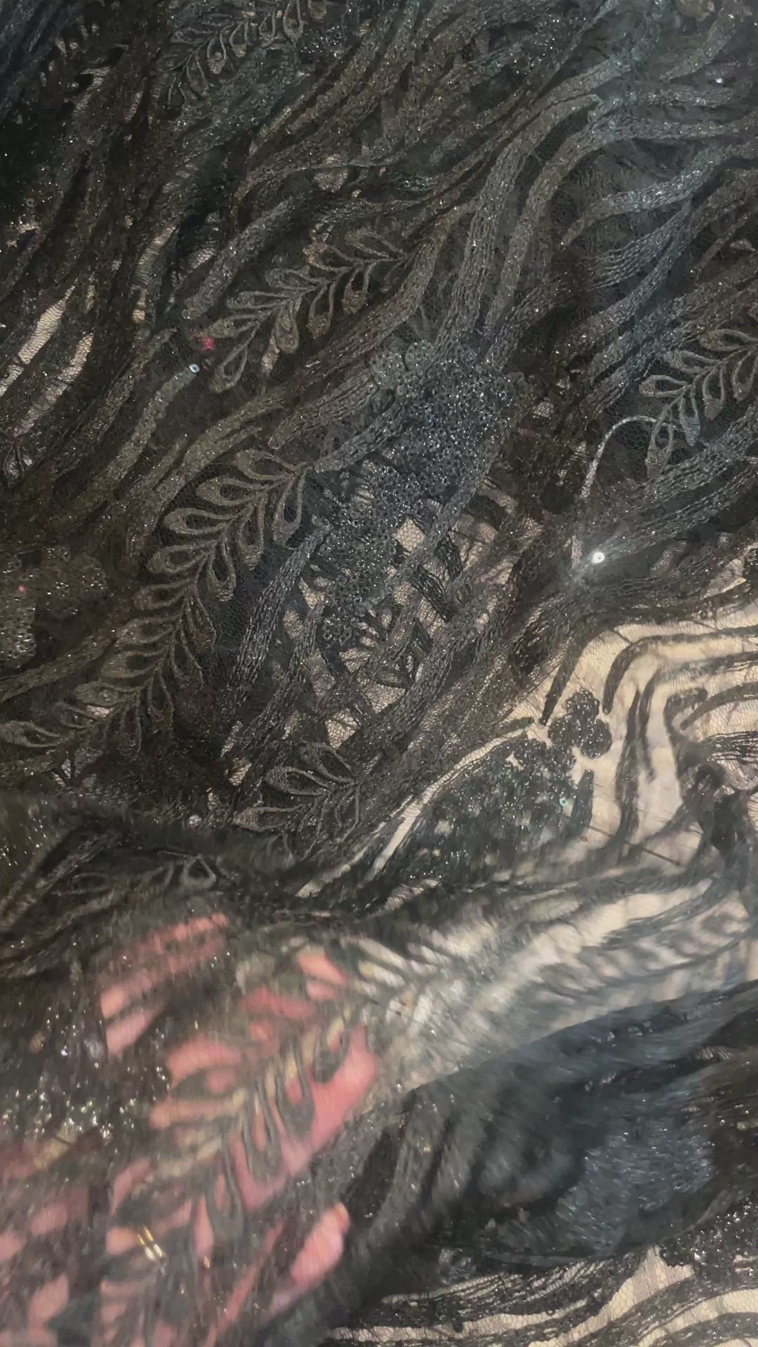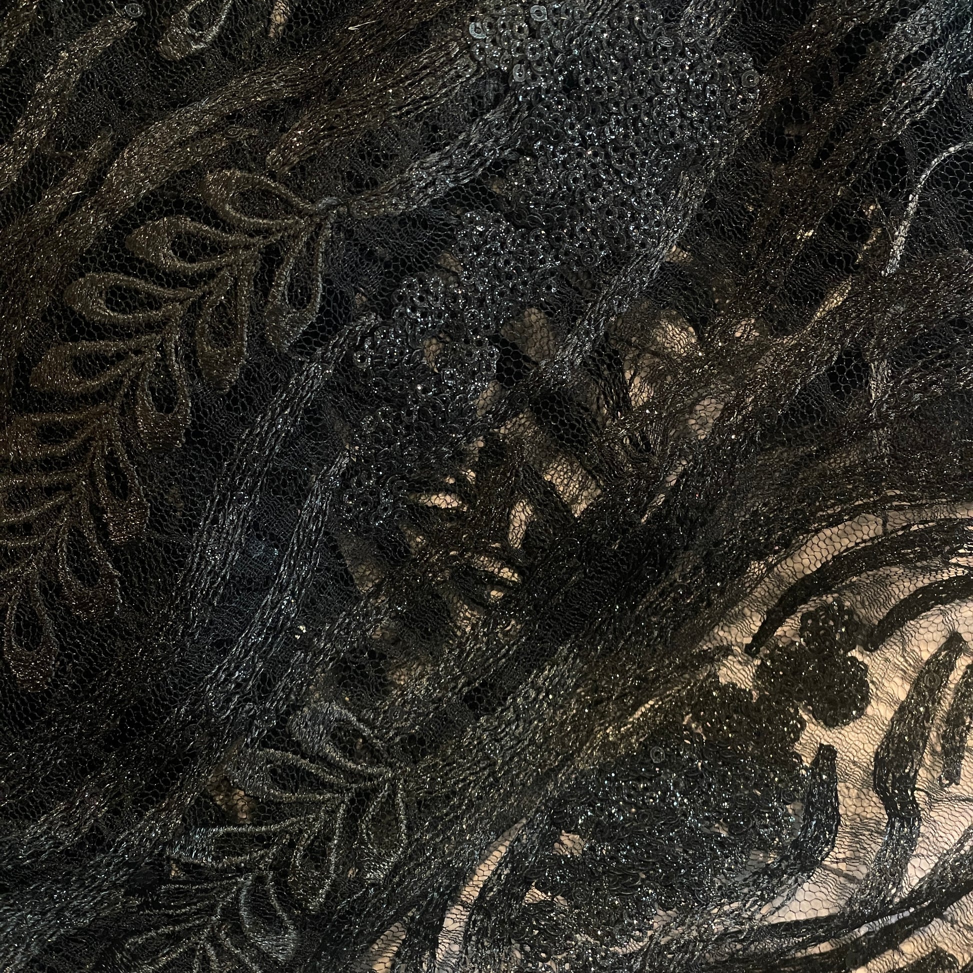 weight: lightweight tulle lace base with all over sequin design. Finished fabric is lightweight . Semi sheer.