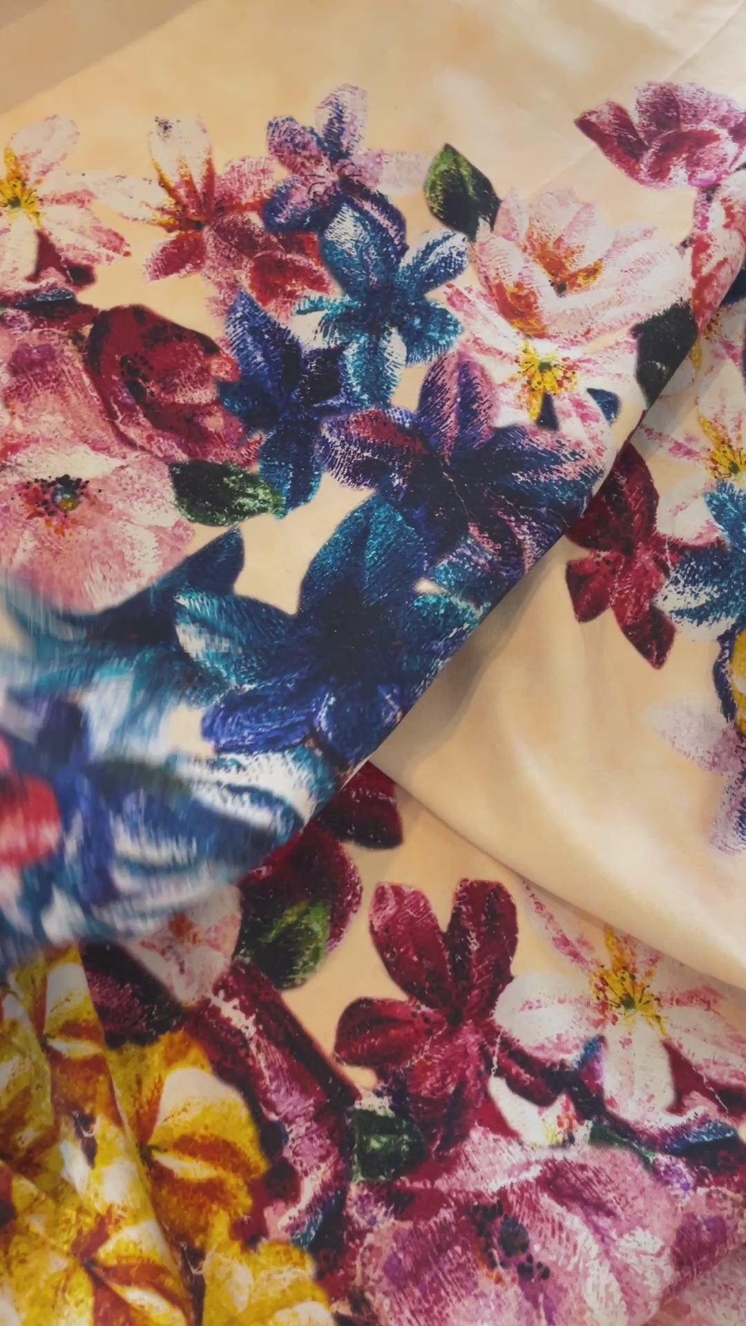 Designer dead stock come to us without fibre content and weight information. We give our best educated guess on both.